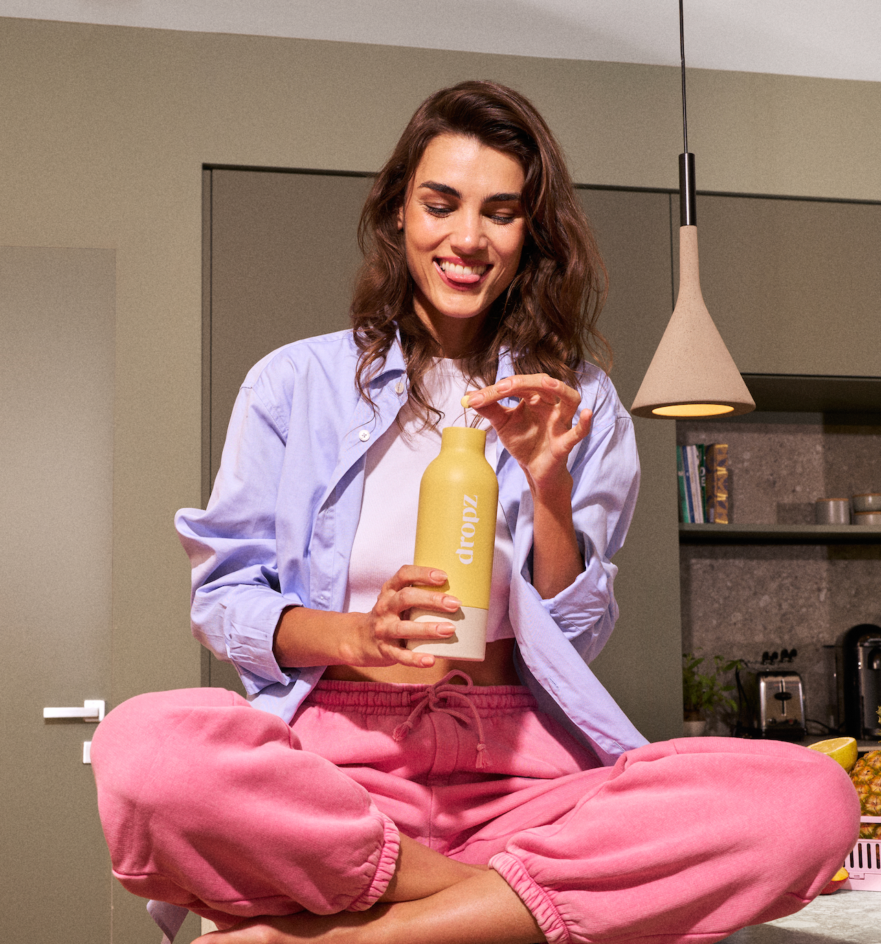 Ein Dropz reicht für 250–500 ml Wasser — je nachdem, wie intensiv du den Geschmack haben möchtest.