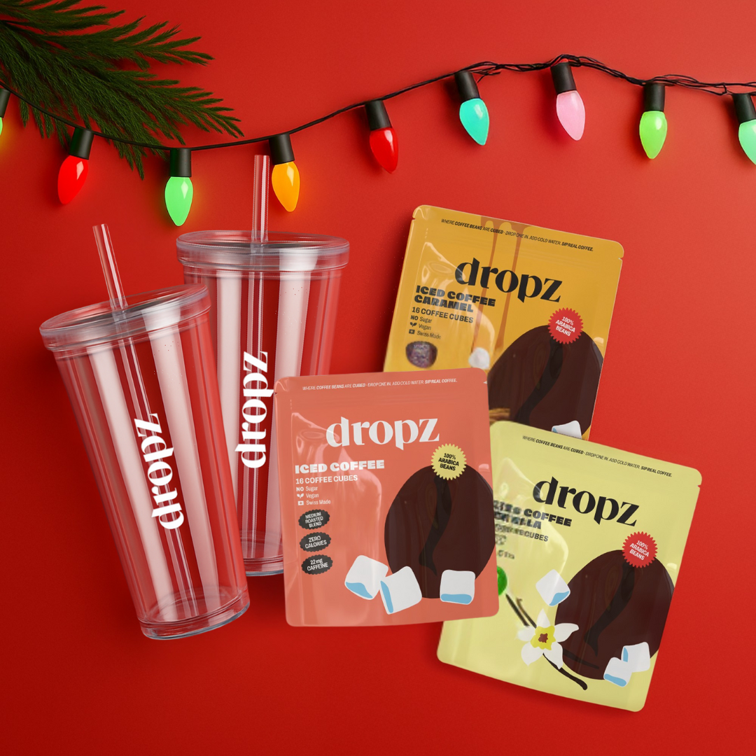 Iced Coffee Cubes sind Würfel aus echtem gebrühten Kaffee, Schock gefroren, um Aroma und Koffein zu bewahren. Einen dropz Cube ins Glas geben, kaltes Wasser darauf giessen, trinken, geniessen. Wie du es magst: pur, mit Hafermilch oder auf Eis.